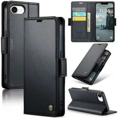 TelefoonhoesjesApple iPhone hoesjesApple iPhone 17e hoesjesCASEME Litchi Texture Book Wallet Case hoesje voor Apple iPhone 17e/16e - Zwart