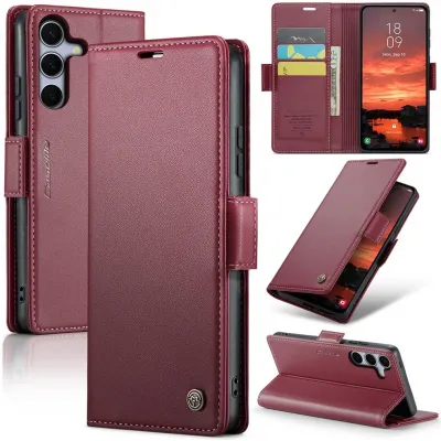 • CASEME Litchi Texture Book Wallet Case hoesje voor Samsung Galaxy S25 Plus - Rood