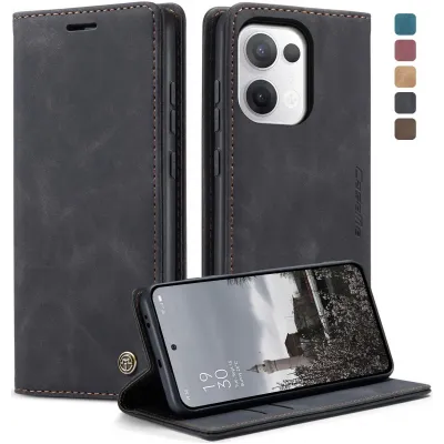 TelefoonhoesjesOppo hoesjesOppo Reno13 hoesjesCASEME Retro Texture Book Wallet Case hoesje voor Oppo Reno13 - Zwart