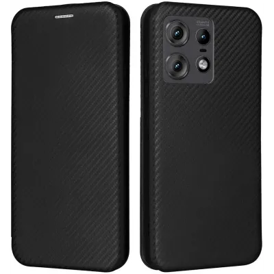 TelefoonhoesjesMotorola hoesjesMotorola Edge 50 Pro hoesjesPhonesta Carbon Fiber Skin Book Wallet Case hoesje voor Motorola Edge 50 Pro - Zwart