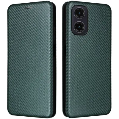 TelefoonhoesjesMotorola hoesjesMotorola Moto G35 hoesjesPhonesta Carbon Fiber Skin Book Wallet Case hoesje voor Motorola Moto G35 - Donkergroen