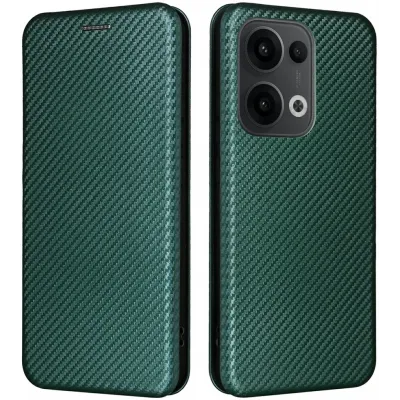 • Phonesta Carbon Fiber Skin Book Wallet Case hoesje voor Oppo Reno13 - Donkergroen
