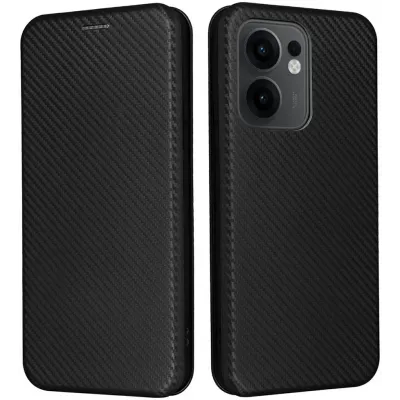 • Phonesta Carbon Fiber Skin Book Wallet Case hoesje voor Oppo Reno13 F 4G/5G / Reno13 FS 5G - Zwart