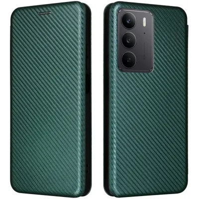 • Phonesta Carbon Fiber Skin Book Wallet Case hoesje voor Realme 14x / C75 - Donkergroen