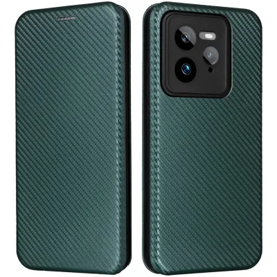 • Phonesta Carbon Fiber Skin Book Wallet Case hoesje voor Realme GT 7 Pro - Donkergroen