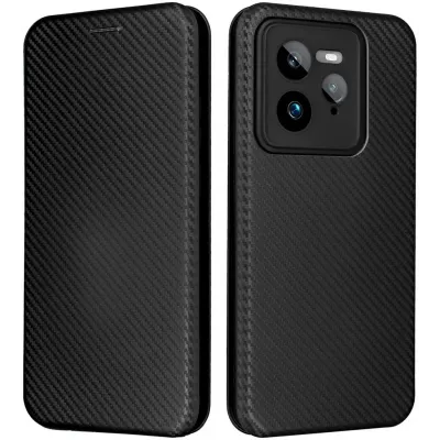 • Phonesta Carbon Fiber Skin Book Wallet Case hoesje voor Realme GT 7 Pro - Zwart