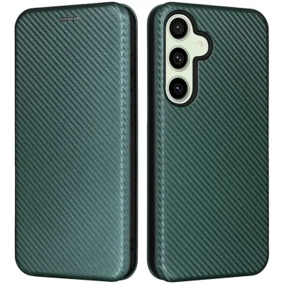 • Phonesta Carbon Fiber Skin Book Wallet Case hoesje voor Samsung Galaxy S24 FE - Donkergroen