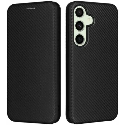 TelefoonhoesjesSamsung Galaxy hoesjesSamsung Galaxy S24 FE hoesjesPhonesta Carbon Fiber Skin Book Wallet Case hoesje voor Samsung Galaxy S24 FE - Zwart