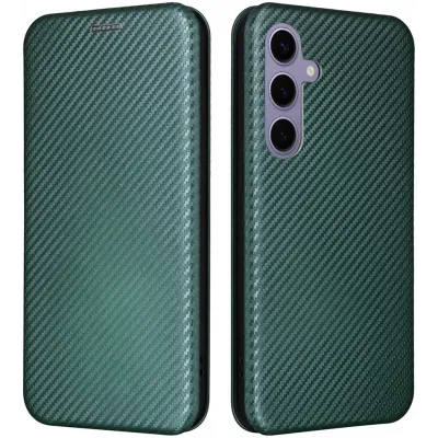 • Phonesta Carbon Fiber Skin Book Wallet Case hoesje voor Samsung Galaxy S25 - Donkergroen