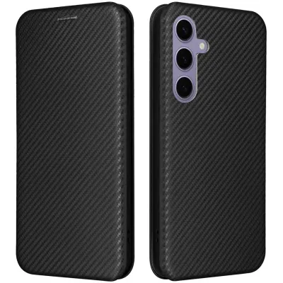 • Phonesta Carbon Fiber Skin Book Wallet Case hoesje voor Samsung Galaxy S25 - Zwart
