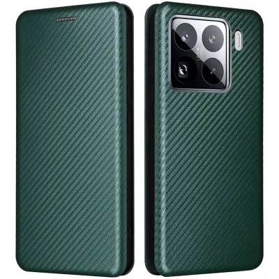 TelefoonhoesjesXiaomi hoesjesXiaomi 15 hoesjesPhonesta Carbon Fiber Skin Book Wallet Case hoesje voor Xiaomi 15 - Donkergroen