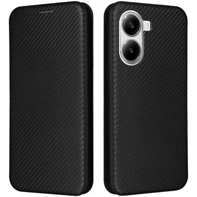 TelefoonhoesjesXiaomi hoesjesXiaomi Poco X7 Pro hoesjesPhonesta Carbon Fiber Skin Book Wallet Case hoesje voor Xiaomi Poco X7 Pro - Zwart