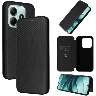 Phonesta Carbon Fiber Skin Book Wallet Case hoesje voor Xiaomi Redmi Note 14 4G - Zwart
