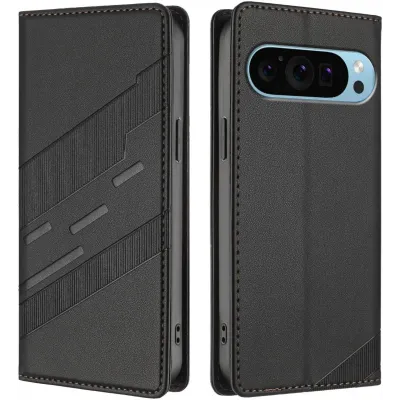 • Phonesta Embossed Lines Book Wallet Case hoesje voor Google Pixel 9 / 9 Pro - Zwart