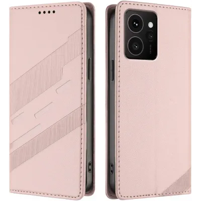 Phonesta Embossed Lines Book Wallet Case hoesje voor HMD Skyline - Roze