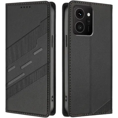 • Phonesta Embossed Lines Book Wallet Case hoesje voor HMD Skyline - Zwart