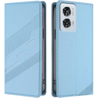 • Phonesta Embossed Lines Book Wallet Case hoesje voor Motorola Edge 50 Fusion - Lichtblauw