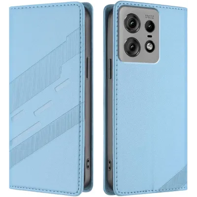 • Phonesta Embossed Lines Book Wallet Case hoesje voor Motorola Edge 50 Pro - Lichtblauw
