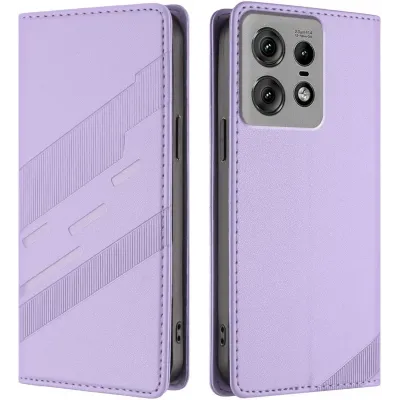 Phonesta Embossed Lines Book Wallet Case hoesje voor Motorola Edge 50 Pro - Paars