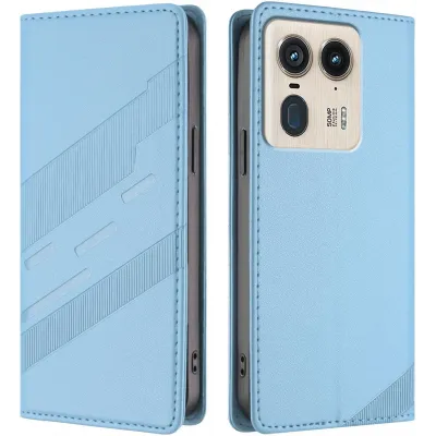 TelefoonhoesjesMotorola hoesjesMotorola Edge 50 Ultra hoesjesPhonesta Embossed Lines Book Wallet Case hoesje voor Motorola Edge 50 Ultra - Lichtblauw