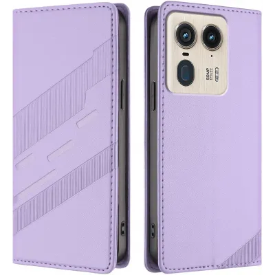 Phonesta Embossed Lines Book Wallet Case hoesje voor Motorola Edge 50 Ultra - Paars