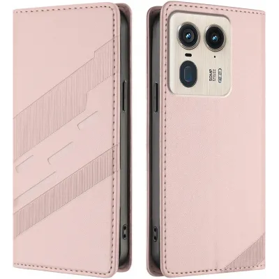 • Phonesta Embossed Lines Book Wallet Case hoesje voor Motorola Edge 50 Ultra - Roze