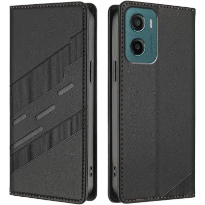 • Phonesta Embossed Lines Book Wallet Case hoesje voor Motorola Moto G05 / Moto E15 - Zwart