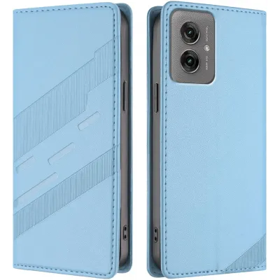 • Phonesta Embossed Lines Book Wallet Case hoesje voor Motorola Moto G55 - Lichtblauw