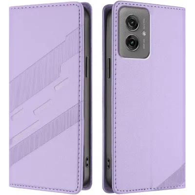 • Phonesta Embossed Lines Book Wallet Case hoesje voor Motorola Moto G55 - Paars