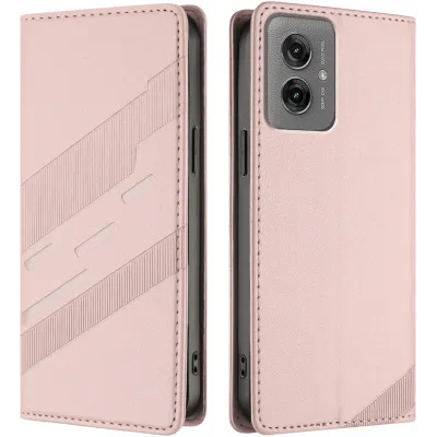 Phonesta Embossed Lines Book Wallet Case hoesje voor Motorola Moto G55 - Roze