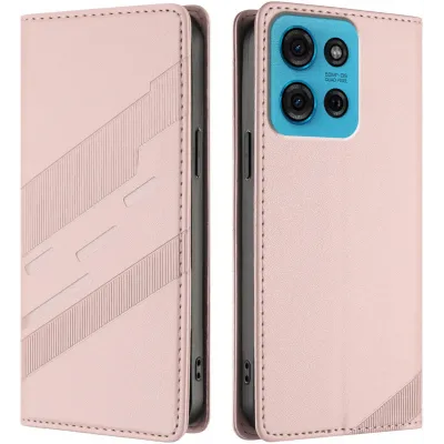 • Phonesta Embossed Lines Book Wallet Case hoesje voor Motorola Moto G75 - Roze