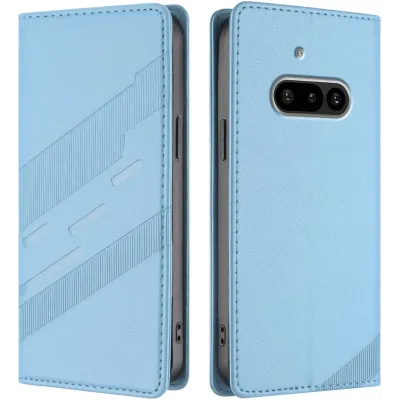 Phonesta Embossed Lines Book Wallet Case hoesje voor Nothing Phone (3a) - Lichtblauw