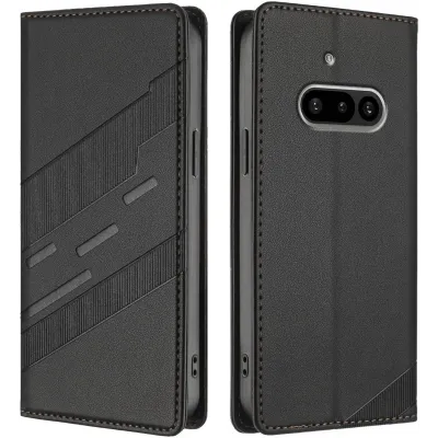 Phonesta Embossed Lines Book Wallet Case hoesje voor Nothing Phone (3a) - Zwart