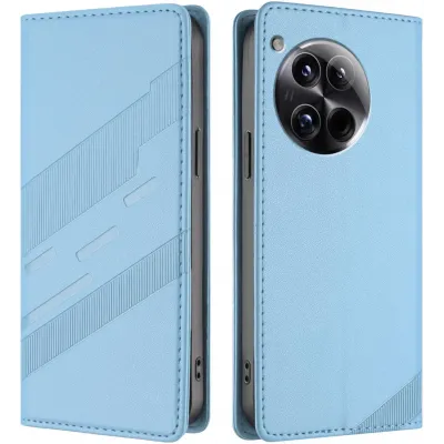 Phonesta Embossed Lines Book Wallet Case hoesje voor OnePlus 12 - Lichtblauw
