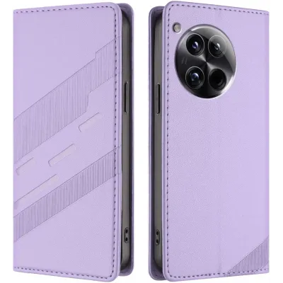 • Phonesta Embossed Lines Book Wallet Case hoesje voor OnePlus 12 - Paars