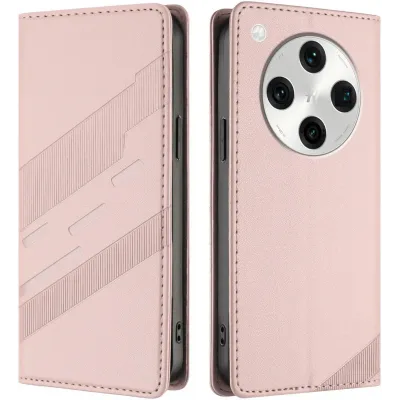 • Phonesta Embossed Lines Book Wallet Case hoesje voor Oppo Find X8 Pro - Roze