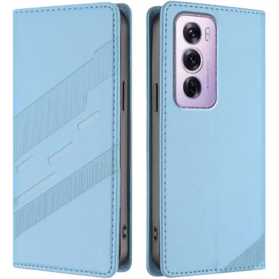 • Phonesta Embossed Lines Book Wallet Case hoesje voor Oppo Reno12 Pro - Lichtblauw