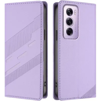 Phonesta Embossed Lines Book Wallet Case hoesje voor Oppo Reno12 Pro - Paars