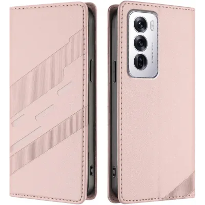 Phonesta Embossed Lines Book Wallet Case hoesje voor Oppo Reno12 - Roze