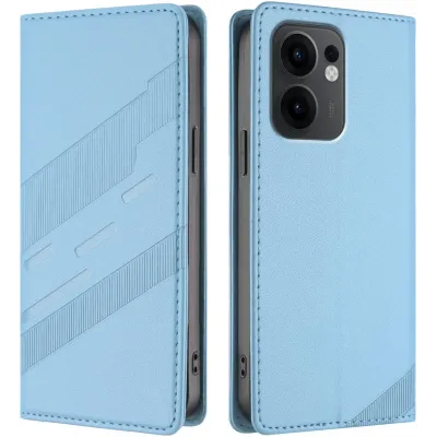 TelefoonhoesjesOppo hoesjesOppo Reno13 FS 5G hoesjesPhonesta Embossed Lines Book Wallet Case hoesje voor Oppo Reno13 F 4G/5G / Reno13 FS 5G - Lichtblauw