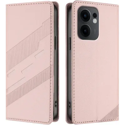 TelefoonhoesjesOppo hoesjesOppo Reno13 FS 5G hoesjesPhonesta Embossed Lines Book Wallet Case hoesje voor Oppo Reno13 F 4G/5G / Reno13 FS 5G - Roze