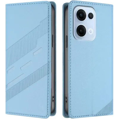 • Phonesta Embossed Lines Book Wallet Case hoesje voor Oppo Reno13 - Lichtblauw