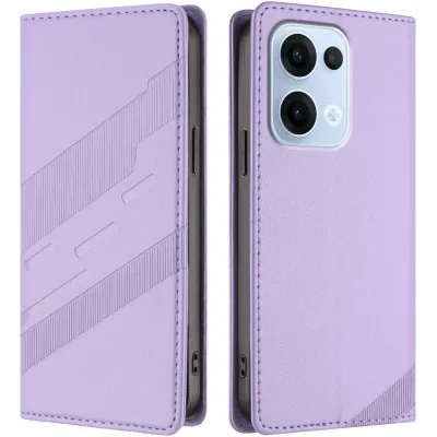 Phonesta Embossed Lines Book Wallet Case hoesje voor Oppo Reno13 - Paars