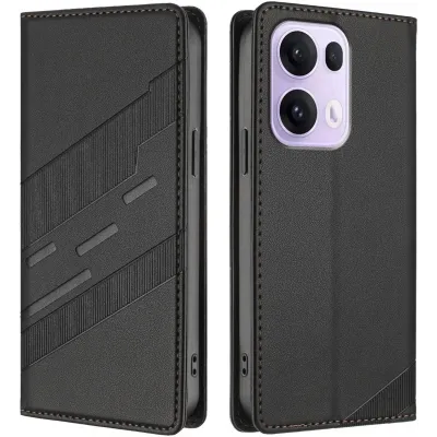 TelefoonhoesjesOppo hoesjesOppo Reno13 Pro hoesjesPhonesta Embossed Lines Book Wallet Case hoesje voor Oppo Reno13 Pro - Zwart