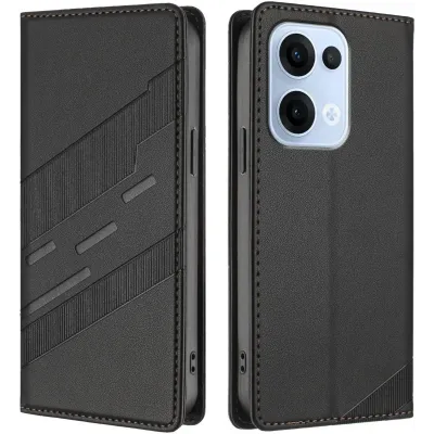 • Phonesta Embossed Lines Book Wallet Case hoesje voor Oppo Reno13 - Zwart
