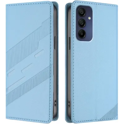 TelefoonhoesjesSamsung Galaxy hoesjesSamsung Galaxy A16 hoesjesPhonesta Embossed Lines Book Wallet Case hoesje voor Samsung Galaxy A16 - Lichtblauw