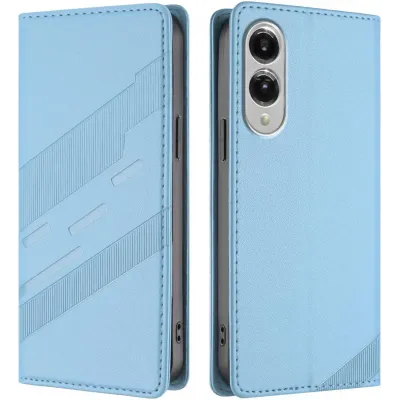 TelefoonhoesjesSamsung Galaxy hoesjesSamsung Galaxy S25 Edge hoesjesPhonesta Embossed Lines Book Wallet Case hoesje voor Samsung Galaxy S25 Edge - Lichtblauw