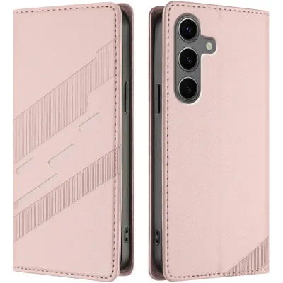 Phonesta Embossed Lines Book Wallet Case hoesje voor Samsung Galaxy S25 Plus - Roze