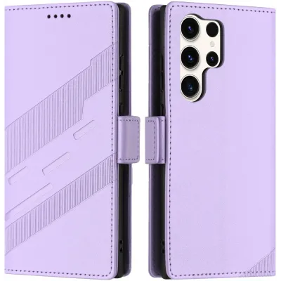 Phonesta Embossed Lines Book Wallet Case hoesje voor Samsung Galaxy S25 Ultra - Paars