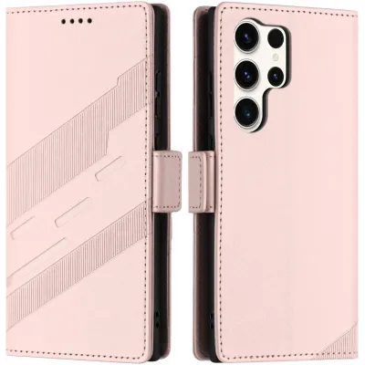 Phonesta Embossed Lines Book Wallet Case hoesje voor Samsung Galaxy S25 Ultra - Roze